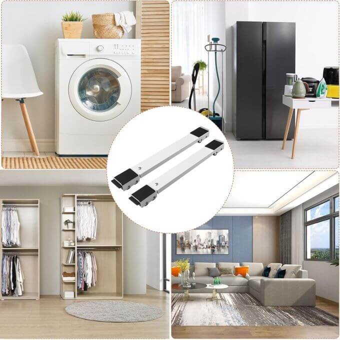 حامل عملي وقابل للتعديل مزوّد بعجلات متينة، يسهّل تحريك الغسالة، الثلاجة والمعدات الثقيلة بكل أمان
