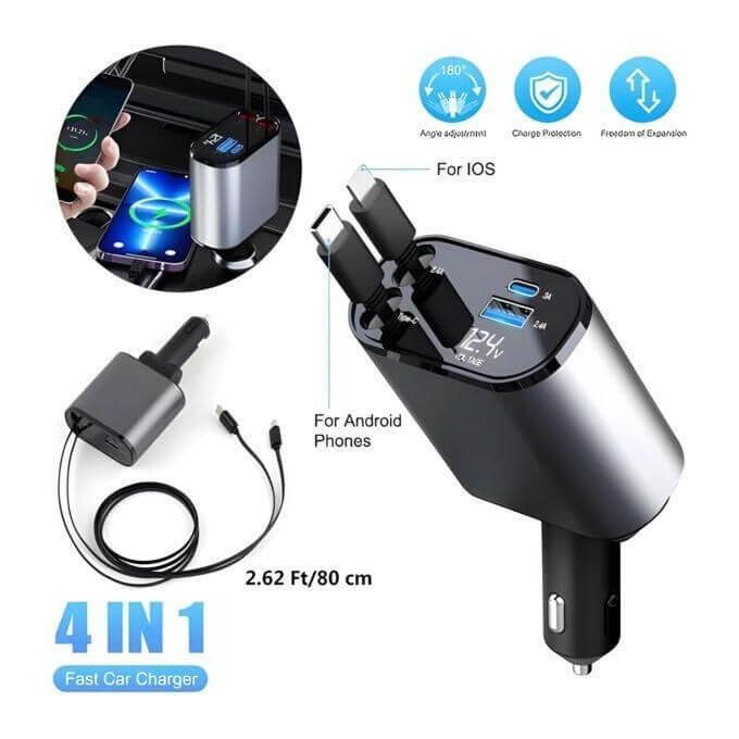 شاحن سيارة قابل للسحب 4 في 1 بقوة 120 واط